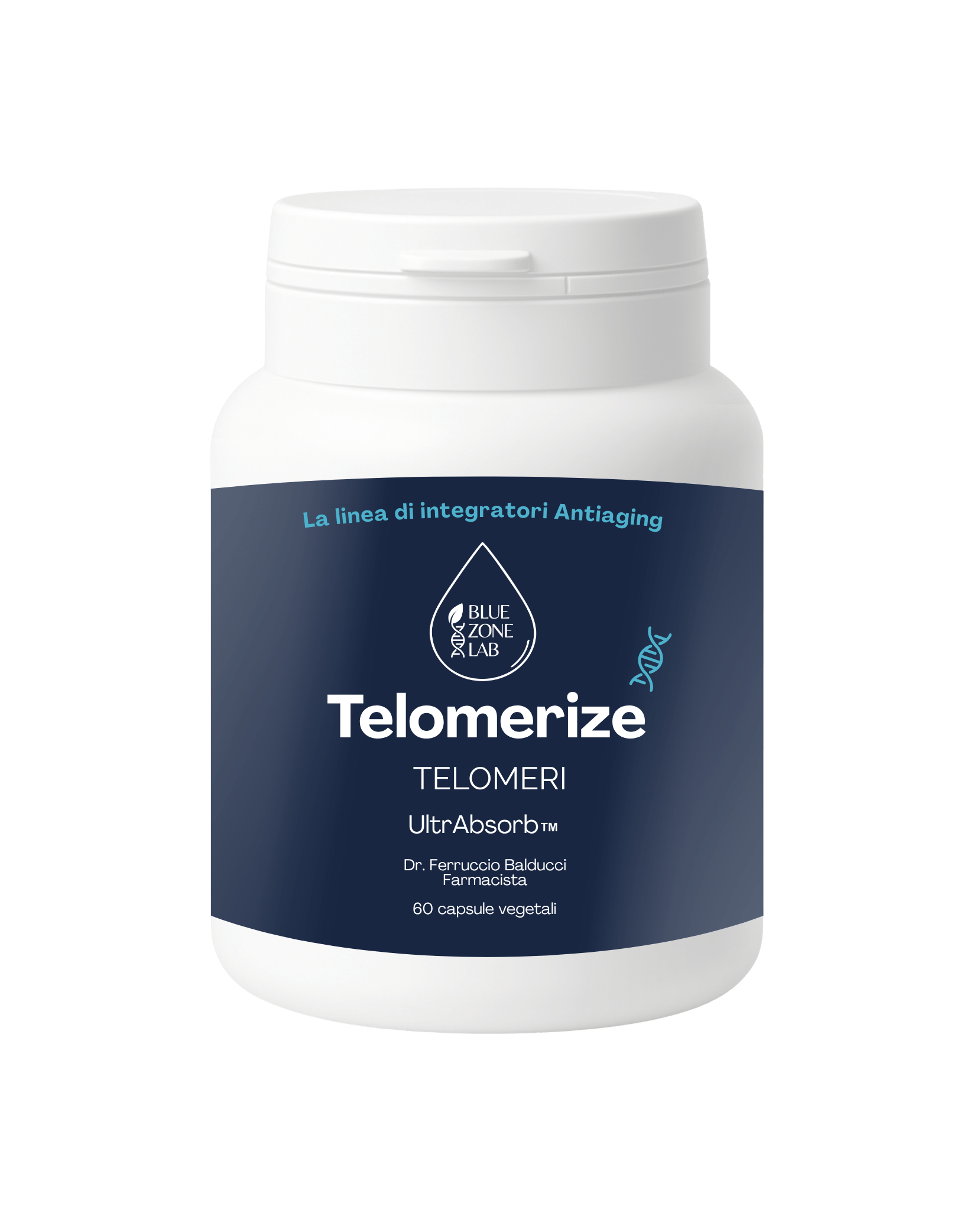 Telomerize è l’integratore della linea antiaging Blue Zone Lab pensato per agire direttamente sui telomeri, le strutture chiave che proteggono il DNA e determinano la vitalità delle cellule.